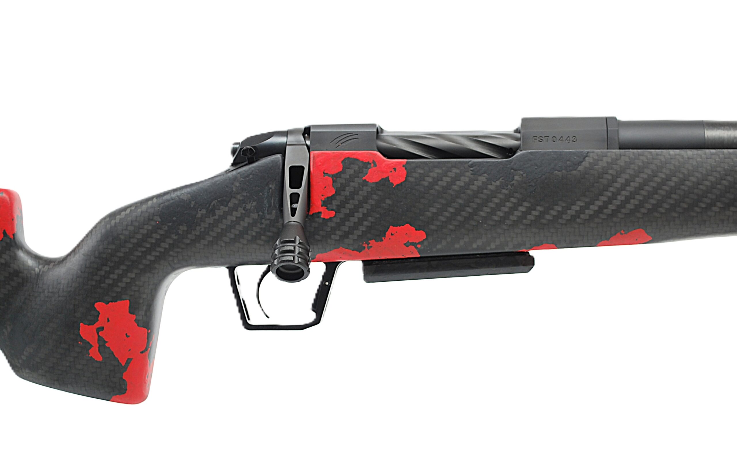Integral pic rail for bipod attachment | Solid carbon bedding system - Blood Red Camo